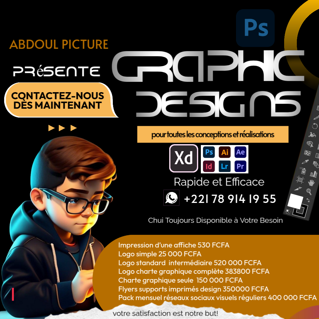 ienvenue dans notre espace de création graphique. Ici, chaque idée prend vie grâce à une combinaison de créativité, de passion et de professionnalisme. Nous transformons vos pensées en visuels uniques qui attirent l'attention et marquent les esprits.